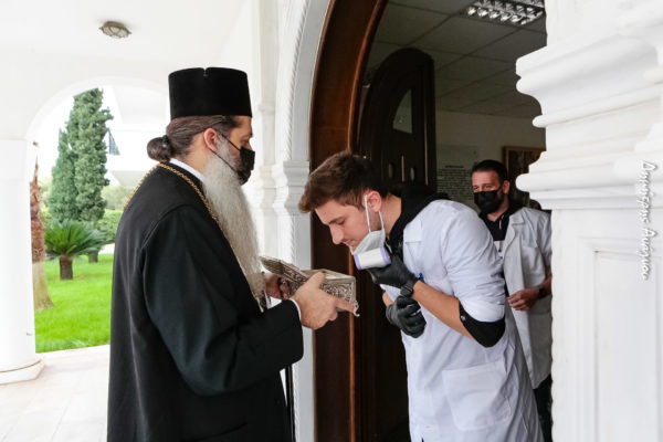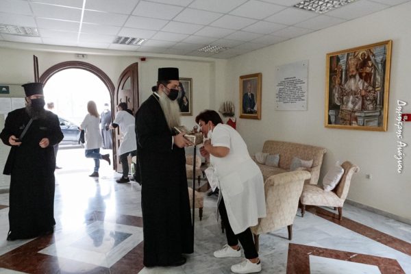 Ο Σεβασμιώτατος Μητροπολίτης κ. Συμεών εκόμισε και το Ιερό Λείψανο του Αγίου Νεκταρίου, το οποίο προσκύνησαν οι γέροντες και το προσωπικό και ευχήθηκε υπέρ υγείας τόσο των γερόντων, όσο και του νοσηλευτικού προσωπικού, ενώ δεν παρέλειψε να συγχαρεί για μία ακόμη φορά το προσωπικό των Ιδρυμάτων αυτών, διότι ως τώρα, όλη την διάρκεια της πανδημίας, δεν έχει νοσήσει κανένας υπάλληλος και κανένας τρόφιμος των κοινωνικοπρονοιακών αυτών δομών.