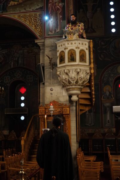 Ο Σεβασμιώτατος ετέλεσε την Αρχιερατική Θεία Λειτουργία του Μεγάλου Βασιλείου πλαισιούμενος από τον Προϊστάμενο – Εφημέριο του Ιστορικού Ναού της Παναγίας Δεσποίνης Λαμίας Αιδεσιμολ. Πρωτ. π. Αλέξανδρο Κοτσουράκη και τον Αρχιδιάκονό του π. Ευστάθιο Κατόπη.