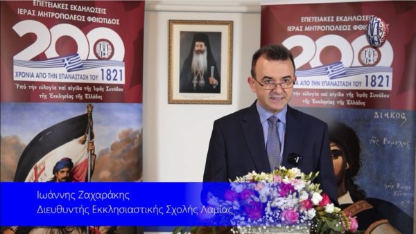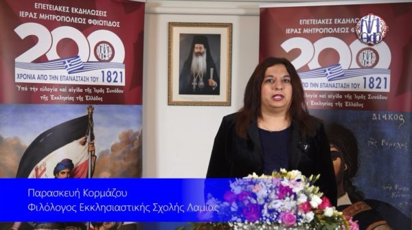 Βρισκόμαστε όμως σήμερα εδώ και για έναν άλλο λόγο: διότι το φετινό έτος είναι επετειακό έτος. Συμπληρώνονται 200 χρόνια από την Επανάσταση του 1821 και η Μητρόπολη διοργανώνει σειρά επετειακών εκδηλώσεων. Επίκεντρο σήμερα των εκδηλώσεων μας είναι η Εκκλησιαστική Σχολή Λαμίας, για να εορτάσουμε την ιερωσύνη και την παιδεία, όπως αυτά τα δύο βαδίζουν μαζί διαχρονικά. Και ιδιαίτερα για την ιερατική εκπαίδευση τα δύσκολα χρόνια της σκλαβιάς, που η ιερατική εκπαίδευση αποτέλεσε πυρήνα έμπνευσης για τον αγώνα της Εθνικής Παλιγγενεσίας.