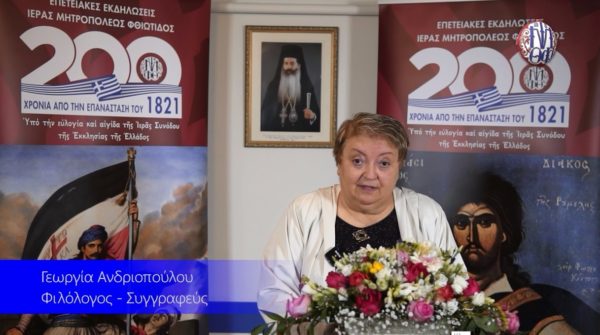 Την κεντρική εισήγηση της εκδηλώσεως ανέλαβε η Φιλόλογος και γνωστή συγγραφέας της πόλεως Λαμίας, κ. Γεωργία Ανδριοπόυλου, η οποία αφού ευχαρίστησε εγκαρδίως τον Σεβασμιώτατο Μητροπολίτη Φθιώτιδος κ. Συμεών για την πρόσκληση και ανάθεση της εισηγήσεως, ακολούθως παρουσίασε το επίκαιρο θέμα: «Η Ιερατική Εκπαίδευση στην Τουρκοκρατία», αντλώντας πληροφορίες και στοιχεία από σπάνιες πηγές, αναδεικνύοντας το γεγονός, ότι η καλλιέργεια των Ιερατικών κλήσεων δεν έπαψε καθόλου κατά την διάρκεια της σκληρής Οθωμανικής σκλαβιάς, αλλά αντίθετα ξεπερνώντας κάθε είδος υπαρκτής δυσκολίας, απέδιδε συνεχής καρπούς.