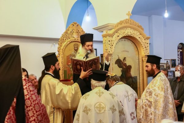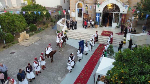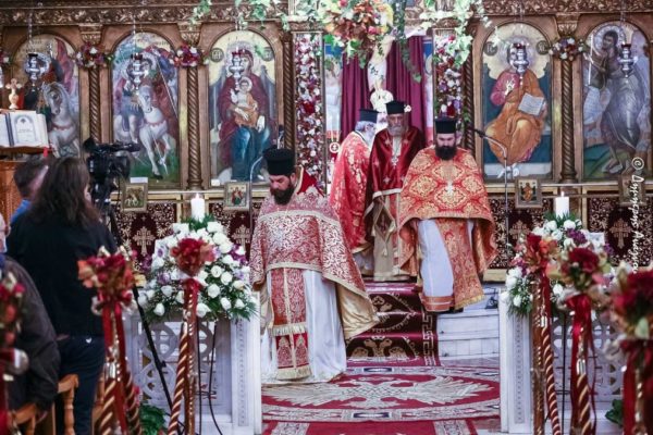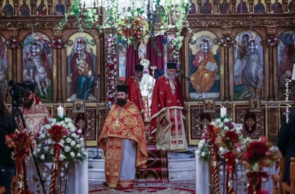 Στα προπύλαια του Ιερού Ναού ο κ. Συμεών συνεχάρη τον Προϊστάμενο της Ενορίας Πρωτ. π. Δημήτριο Ατματζίδη, τους ιερείς, το Εκκλησιαστικό Συμβούλιο και όλους τους συνεργάτες και εθελοντές της Ενορίας για την άρτια διεξαγωγή της λαμπράς Πανηγύρεως και απέστειλε για μία φορά ακόμη ένα μήνυμα ενότητοςκαι συναλληλίας σημειώνοντας:
