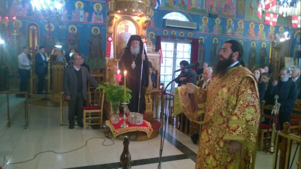 Ο π. Χριστοφόρος με αισθήματα ειλικρινούς υικής αγάπης και σεβασμού, προσεφώνησε τον Σεβασμιώτατο, ευχαριστώντας τον εκ βάθους καρδίας δια την τιμητική και αγιαστική παρουσία του στην Εορτή. Τέλος, εκ μέρους του Εκκλησιαστικού Συμβουλίου, στο παρακείμενο Ενοριακό Πνευματικό Κέντρο προσεφέρθη πλούσιο κέρασμα σε όλους τους εορταστάς.