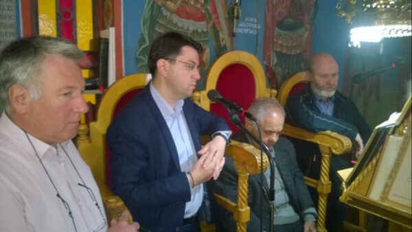 Ο π. Χριστοφόρος με αισθήματα ειλικρινούς υικής αγάπης και σεβασμού, προσεφώνησε τον Σεβασμιώτατο, ευχαριστώντας τον εκ βάθους καρδίας δια την τιμητική και αγιαστική παρουσία του στην Εορτή. Τέλος, εκ μέρους του Εκκλησιαστικού Συμβουλίου, στο παρακείμενο Ενοριακό Πνευματικό Κέντρο προσεφέρθη πλούσιο κέρασμα σε όλους τους εορταστάς.