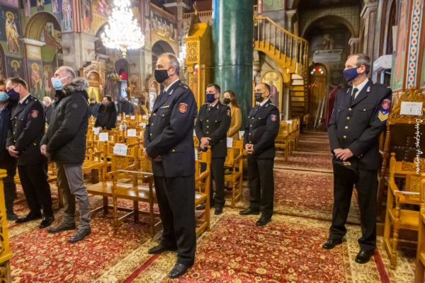 Τους προστάτες τους Αγίους Τρείς Παίδας εν Καμίνω τίμησε σήμερα, Παρασκευή 17 Δεκεμβρίου 2021, το πρωί το Πυροσβεστικό Σώμα Στερεάς Ελλάδος με Δοξολογία στον Ιερό Μητροπολιτικό Ναό Ευαγγελισμού της Θεοτόκου Λαμίας.