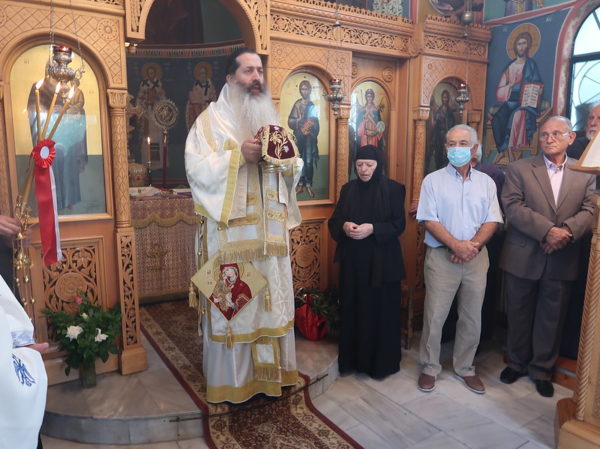 Τον κ. Συμεών πλαισίωσαν, ο Πρωτοσύγελλος της Ιεράς Μητροπόλεως Πανοσιολ. Αρχιμ. π. Άγγελος Ανθόπουλος και άλλοι κληρικοί της περιοχής.