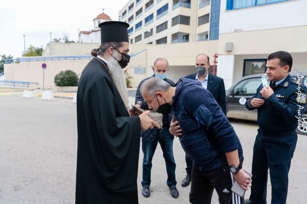 Ο Σεβασμιώτατος εκόμισε το τεμάχιο του Ιερού Λειψάνου στο Γενικό Νοσοκομείο Λαμίας, όπου στον υπό αποκατάσταση Ιερό Ναό του Αγίου Νεκταρίου τέλεσε Αρχιερατική Δέηση υπέρ υγείας των ασθενών του Νοσοκομείου, καθώς και υπέρ ενισχύσεως του Ιατρικού και του Νοσηλευτικού προσωπικού, παρουσία της Αναπληρώτριας Υπουργού Υγείας κ. Μίνας Γκάγκα, του Διοικητού της 5ης Υγειονομικής Περιφέρειας Στερεάς και Θεσσαλίας κ. Φώτη Σερέτη, του Περιφερειάρχου Στερεάς Ελλάδος κ. Φάνη Σπανού, του Διοικητού του Νοσοκομείου κ. Ανδρέα Κολοκυθά, καθώς και άλλων τοπικών θεσμικών αρχών, των ιατρών και του νοσηλευτικού προσωπικού του Γενικού Νοσοκομείου Λαμίας.