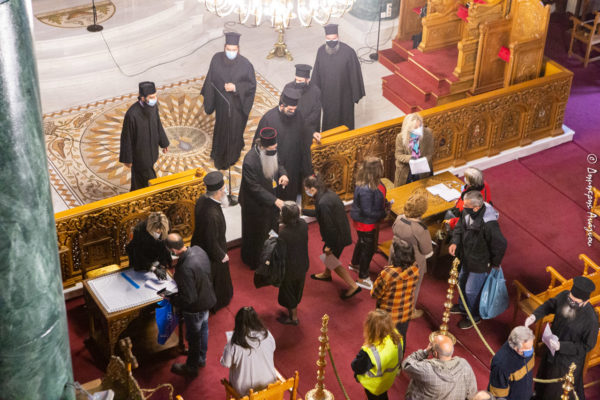 Η διανομή πραγματοποιήθηκε με την τήρηση όλων των υγειονομικών μέτρων και πρωτοκόλλων στον Ιερό Μητροπολιτικό Ναό Ευαγγελισμού της Θεοτόκου Λαμίας, όπου ο Σεβασμιώτατος είχε την ευκαιρία να δώσει την ευλογία του σε όλους τους αδελφούς και να ευχηθεί πατρικώς: