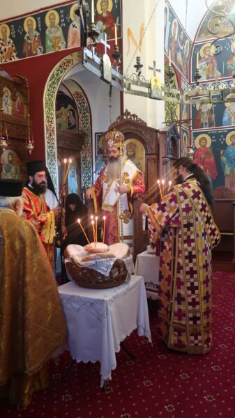 Ο Σεβασμιώτατος Μητροπολίτης Φθιώτιδος κ. Συμεών, λίαν πρωί την Τετάρτη 19 Φεβρουαρίου, μετέβη στην Ιερά Μονή, προκειμένου να ευχηθεί πατρικώς στην άγουσα τα ονομαστήριά της, αγία Καθηγουμένη της Μονής, Οσιολογιωτάτη Γερόντισσα Φιλοθέη και να συνεορτάσει με την Ιερά Αδελφότητα και τους παρισταμένους πιστούς, ευλαβείς προσκυνητές της Μονής και πνευματικά τέκνα της Γεροντίσσης, με το Μυστήριο της Θείας Ευχαριστίας, τη μνήμη της Οσίας, το οποίο και ετελέσθη εις το Νέο Καθολικό της Μονής, αφιερωμένο στην Παναγία μας τη Φοβερά Προστασία.