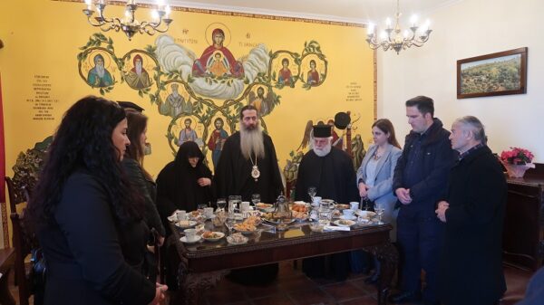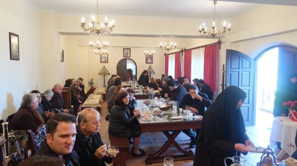 Μετά το πέρας της Αρχιερατικής Θεία Λειτουργίας, εκ μέρους της Ιεράς Αδελφότητος προσεφέρθη εόρτιο κέρασμα προς όλους στο Αρχονταρίκι της Μονής, κατά την διάρκεια του οποίου, η Γερόντισσα Φιλοθέη, εδέχθη τις ευχές όλων, αλλά και με πολύ αγάπη και εγκάρδια λόγια προσευχής και τιμής ευχαρίστησε τον Σεβασμιώτατο για την αγιαστική παρουσία του.