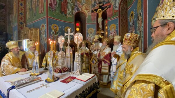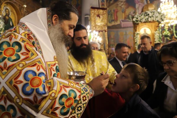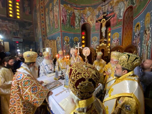 Το πρωί τελέστηκε πολυαρχιερατικό συλλείτουργο προεξάρχοντος του Σεβασμιωτάτου κ. Συμεών, συλλειτουργούντων των Σεβασμιωτάτων Μητροπολιτών Δημητριάδος και Αλμυρού κ. Ιγνατίου, Χαλκίδος κ. Χρυσοστόμου, Μεσσηνίας κ. Χρυσοστόμου, Θηβών και Λεβαδείας κ. Γεωργίου, Φωκίδος κ. Θεοκτίστου, Ιλίου κ. Αθηναγόρα, Λαρίσης και Τυρνάβου κ. Ιερωνύμου και του Θεοφιλεστάτου Επισκόπου Ανδρούσης κ. Κωνσταντίου.