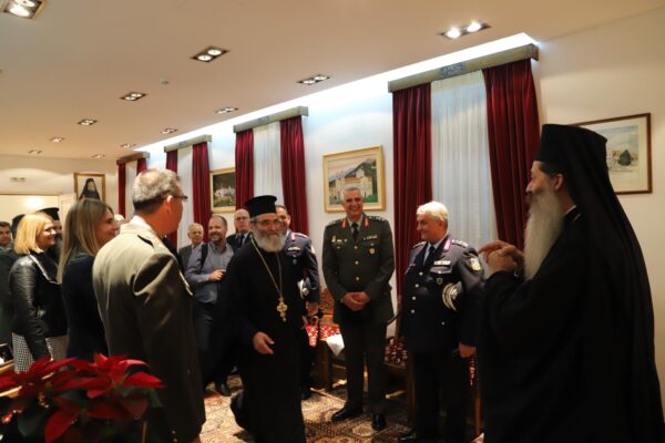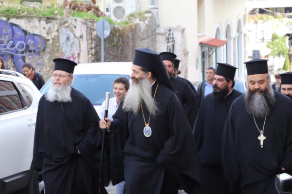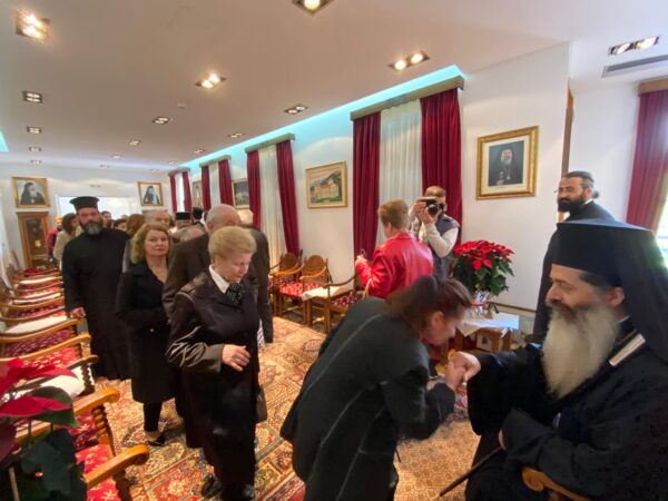 Μετά το πέρας της Θείας Λειτουργίας ο Σεβασμιώτατος κατευθυνόμενος προς το Επισκοπείο, έκανε μια μικρή εξόρμηση στις καφετέριες της Λαμίας και συνομίλησε με πιστούς. Ακολούθως κλήρος, τοπικοί άρχοντες και λαός των υποδέχτηκαν στο Επισκοπείο όπου και του ευχήθηκαν.