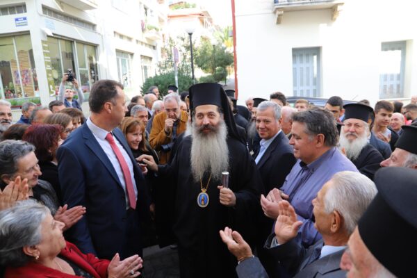 Μετά το πέρας της Θείας Λειτουργίας ο Σεβασμιώτατος κατευθυνόμενος προς το Επισκοπείο, έκανε μια μικρή εξόρμηση στις καφετέριες της Λαμίας και συνομίλησε με πιστούς. Ακολούθως κλήρος, τοπικοί άρχοντες και λαός των υποδέχτηκαν στο Επισκοπείο όπου και του ευχήθηκαν.
