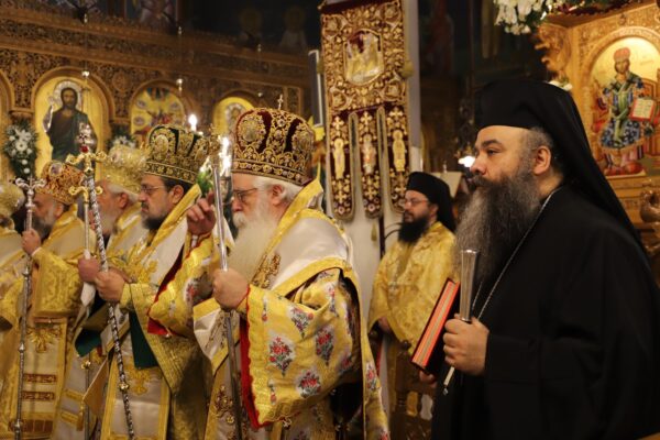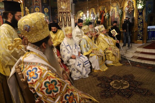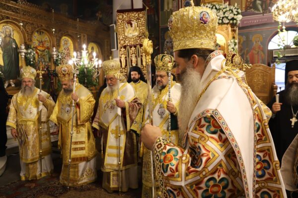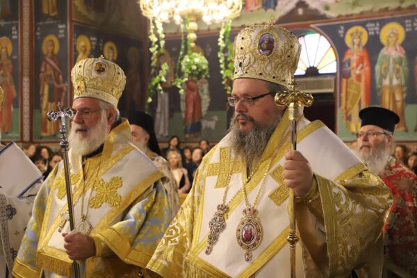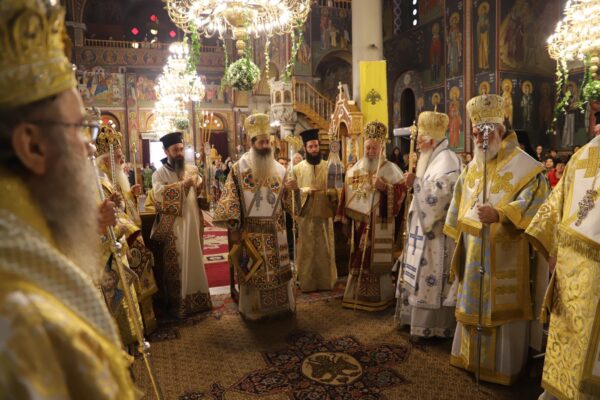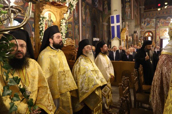 Το πρωί τελέστηκε πολυαρχιερατικό συλλείτουργο προεξάρχοντος του Σεβασμιωτάτου κ. Συμεών, συλλειτουργούντων των Σεβασμιωτάτων Μητροπολιτών Δημητριάδος και Αλμυρού κ. Ιγνατίου, Χαλκίδος κ. Χρυσοστόμου, Μεσσηνίας κ. Χρυσοστόμου, Θηβών και Λεβαδείας κ. Γεωργίου, Φωκίδος κ. Θεοκτίστου, Ιλίου κ. Αθηναγόρα, Λαρίσης και Τυρνάβου κ. Ιερωνύμου και του Θεοφιλεστάτου Επισκόπου Ανδρούσης κ. Κωνσταντίου.