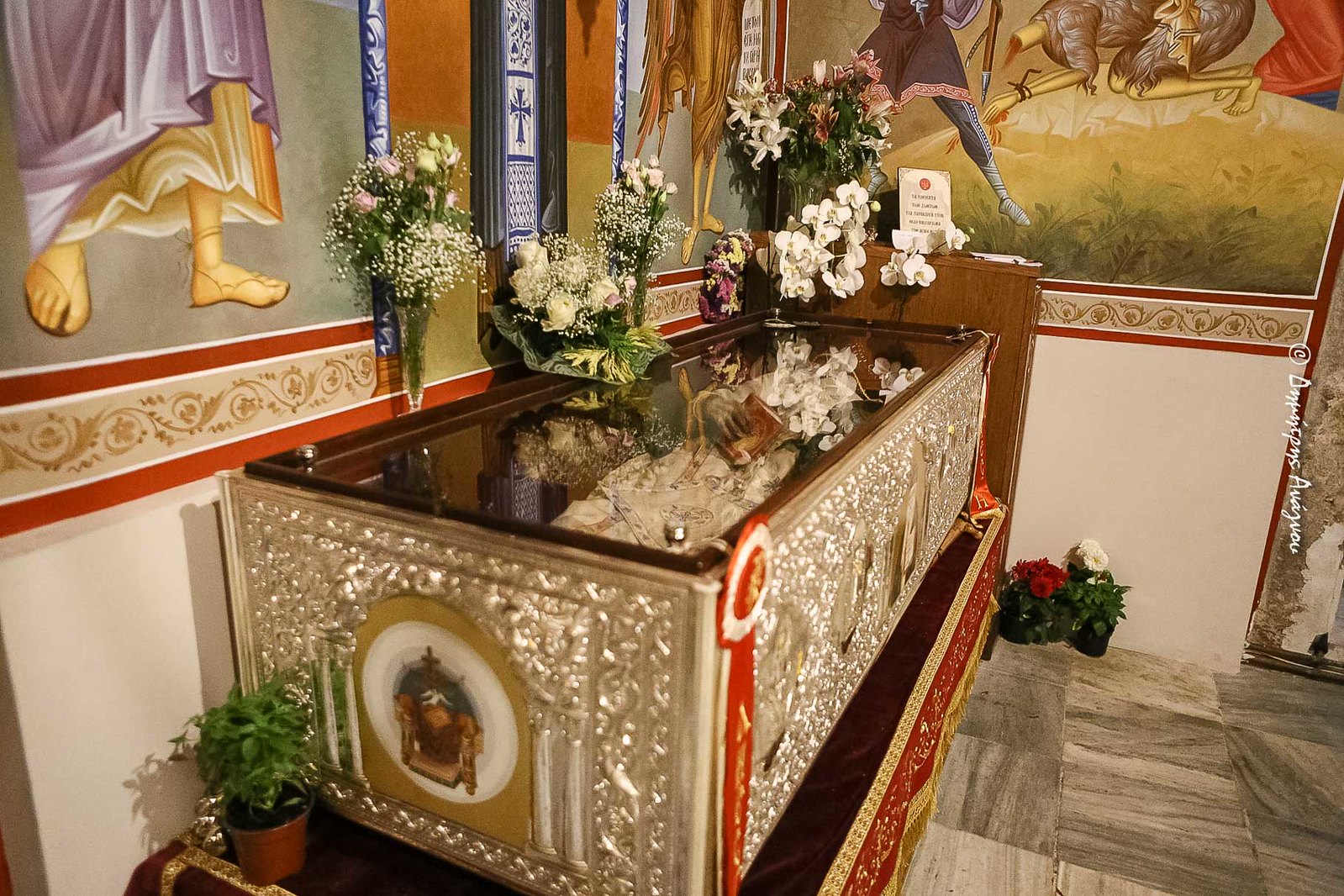 Συνεορτάζουμε σήμερα μαζί με την Παναγία όλους τους Αγίους της Μονής, από τον Όσιο Αγάθωνα μέχρι τον Όσιο Βησσαρίωνα και πολλούς των οποίων ίσως να αγνοούμε την αγιότητα ή την ύπαρξη και Κύριος ο Θεός σε χρόνους που ο ίδιος ξέρει θα φανερώσει και θα φέρει μπροστά μας. Μαζί με την Παναγία εορτάζουν όλα τα παιδιά της».