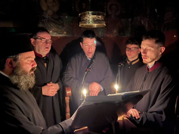 Προ της απολύσεως ο Σεβασμιώτατος τέλεσε Αρχιερατικό Τρισάγιο υπέρ αναπαύσεως του μακαριστού Αρχιεπισκόπου Αθηνών και πάσης Ελλάδος κυρού Χριστοδούλου, επί τη συμπληρώσει 15 ετών από της κοιμήσεώς του.