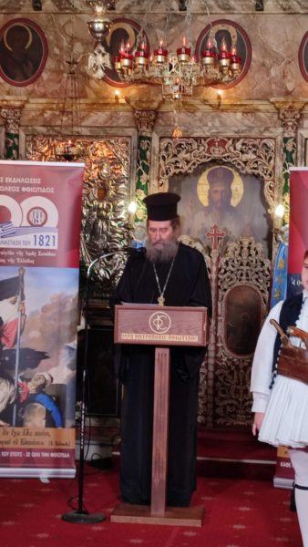 Μετά το πέρας της Ιεράς Παρακλήσεως στον Ιερό Ναό πραγματοποιήθηκε επιτυχώς η 53η επετειακή εκδήλωση της Ι.Μ. Φθιώτιδος σε συνεργασία με τον Δήμο Αμφίκλειας – Ελάτειας με θέμα: «Σημαντικές προσωπικότητες, προ κατά την διάρκεια της Επαναστάσεως».