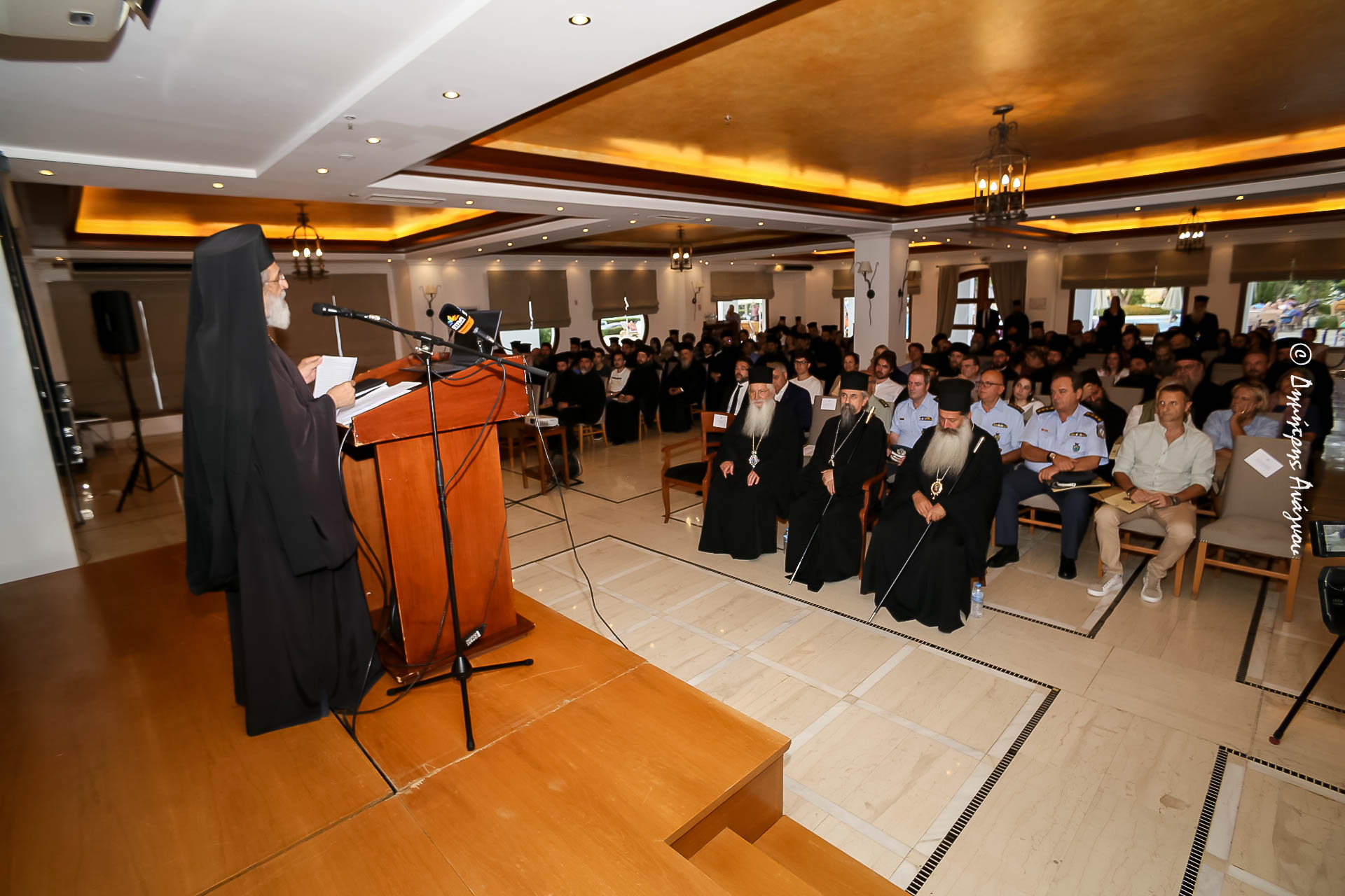 Ο Γραμματεύς της Συνοδικής Επιτροπής, Πανοσιολ. Αρχιμ. π. Πολύκαρπος Μπόγρης παρουσίασε το θέμα του Συνεδρίου ««Η βία ως ανθρωπολογικό πρόγραμμα. Η Ορθόδοξη θεώρηση» ενώ ανέγνωσε το πατρικό μήνυμα του Μακαριωτάτου.
