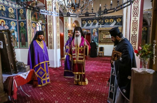 Σήμερα νωρίς το πρωί, όρθρου βαθέος, ο κ. Συμεών στο νέο Καθολικό της Μονής της Υπεραγίας Θεοτόκου της Φοβεράς Προστασίας, ετέλεσε Αρχιερατική Θεία Λειτουργία των Προηγιασμένων Δώρων, πλαισιούμενος από την Οσιολογιωτάτη Καθηγουμένη της Μονής, Γερόντισσα Φιλοθέη και την περί αυτήν Ιερά Αδελφότητα, η οποία και μεταδόθηκε απευθείας από τον Ραδιοφωνικό Σταθμό της Ιεράς Μητροπόλεως (89,4 Fm).