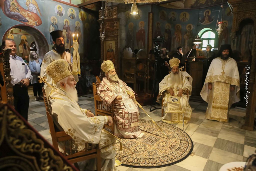 Πολυαρχιερατικό Συλλείτουργο προεξάρχοντος του Σεβασμιωτάτου Μητροπολίτου Μάνης κ. Χρυσοστόμου και συλλειτουργούντων των Σεβασμιωτάτων Μητροπολιτών Λήμνου και Αγίου Ευστρατίου κ. Ιεροθέου, καθώς και του οικείου Ποιμενάρχου, Μητροπολίτου Φθιώτιδος κ. Συμεών τελέσθηκε σήμερα το πρωί στο Καθολικό της Ιεράς Μονής Κοιμήσεως της Θεοτόκου Αγάθωνος.
