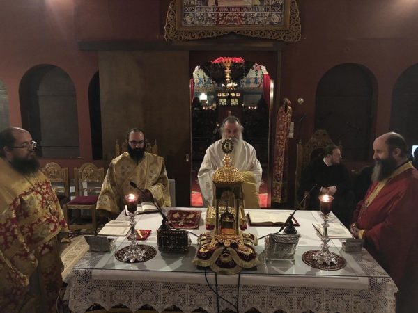 Μετά την Ιερά Παράκληση τελέσθηκε Ιερά Αγρυπνία από τον Καθηγούμενο της Μονής, Αρχιμανδρίτη π. Νικηφόρο και συλειτουργούντων πατέρων της Ιεράς Μητροπόλεως Λευκάδος και Ιθάκης.