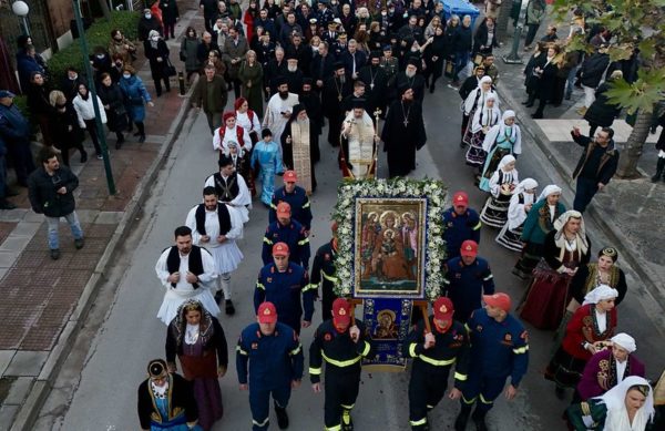 Με τις δέουσες τιμές η Λαμία υποδέχθηκε πιστό αντίγραφο της Ιεράς Εικόνος της Παναγίας Πεφανερωμένης από τη Λευκάδα