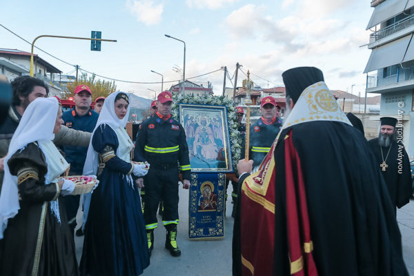 Την Ιερά Εικόνα συνόδευαν άνδρες της 7ης ΕΜΑΚ και της ΕΜΟΔΕ, ενώ μέλη παραδοσιακών Συλλόγων του τόπου με παραδοσιακές φορεσιές περιστοίχισαν την Εικόνα ραίνοντας την με άνθη.