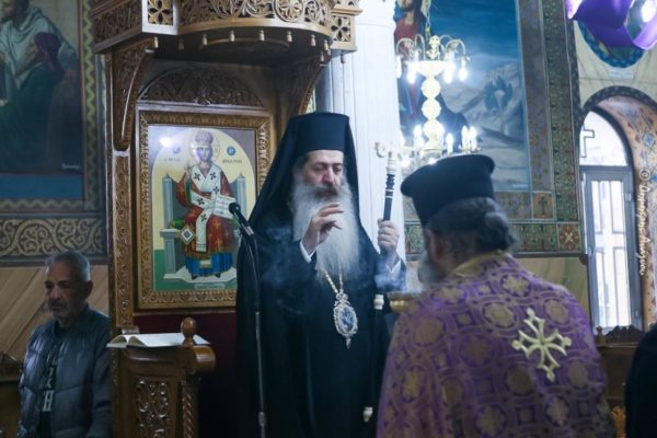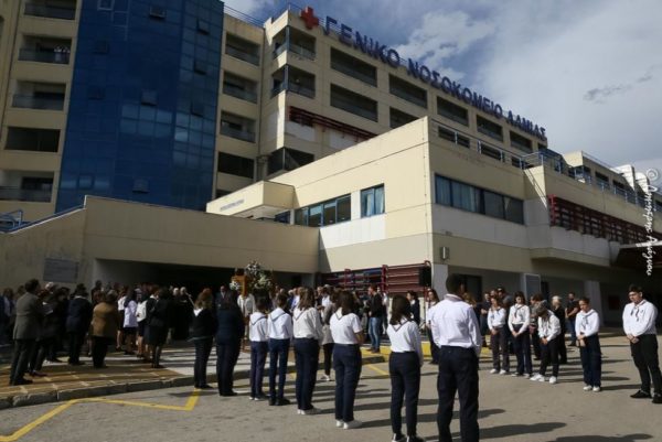 Στη συνέχεια ο κ. Συμεών μετέβη στο Γενικό Νοσοκομείο της Λαμίας, όπου χοροστάτησε στην Ακολουθία του Όρθρου του Μεγάλου Σαββάτου και προέστη της περιφοράς του Επιταφίου στους χώρους του Νοσοκομείου δεόμενος υπέρ των ασθενών, των οικείων τους αλλά και του διακονούντος ιατρικού, νοσηλευτικού, διοικητικού, τεχνικού και βοηθητικού προσωπικού.