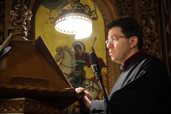 Τα Ιερά ψάλματα απέδωσαν εν κατανύξει και ιεροπρεπεία, ο Διευθυντής της Σχολής Βυζαντινής Μουσικής της Ιεράς Μητροπόλεως μας «Γερμανός ο Μελωδός», κ. Ανδρέας Ιωακείμ και ο Πτυχιούχος της Σχολής, Ιεροψάλτης κ. Ιωάννης Κωστορίζος.