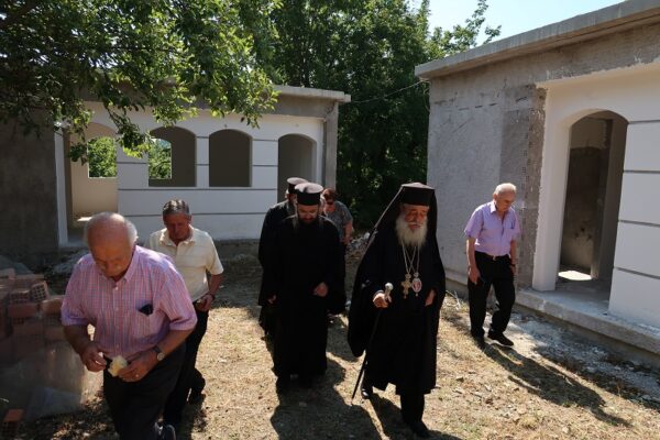 Συνεχάρη τον Εφημέριο της Ενορίας π. Ιωάννη Σουφλερό, το Εκκλησιαστικό Συμβούλιο και όλους τους συνεργάτες για τις φιλότιμες προσπάθειες που καταβάλλουν στην αποπεράτωση του έργου της νέας πτέρυγας, η οποία περιβάλλει τον Μοναστηριακό Ναό και ευχήθηκε ο Πανάγαθος Θεός δια πρεσβειών του Προφήτου Ηλιού να τους χαρίζει υγεία, ευλογία και δύναμη.