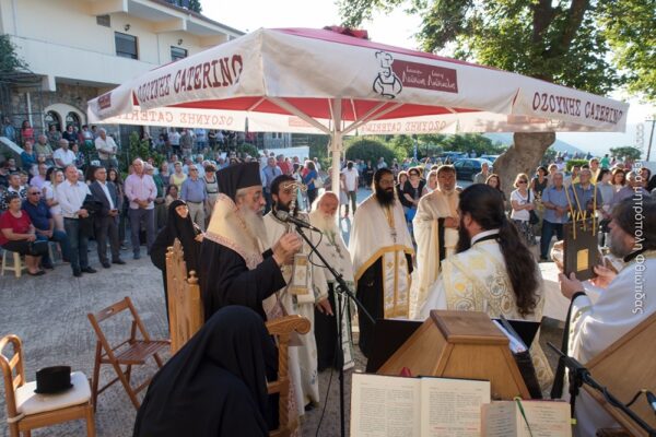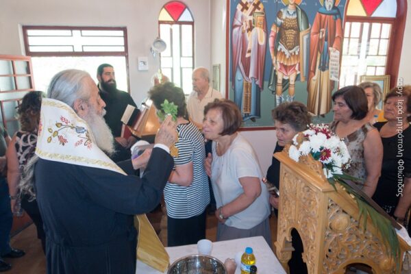 Στην σύντομη προσλαλιά του ευχήθηκε σε όλους Χρόνια Πολλά και συνεχάρη τους κτίτορες για το θεάρεστο έργο τους. Στο τέλος του εορτασμού ο Σεβασμιώτατος είχε την ευκαιρία να επικοινωνήσει με τους πιστούς όχι μόνο από το χωριό αλλά και αυτούς που προσήλθαν από την ευρύτερη περιοχή και από τα χωριά του Δομοκού.