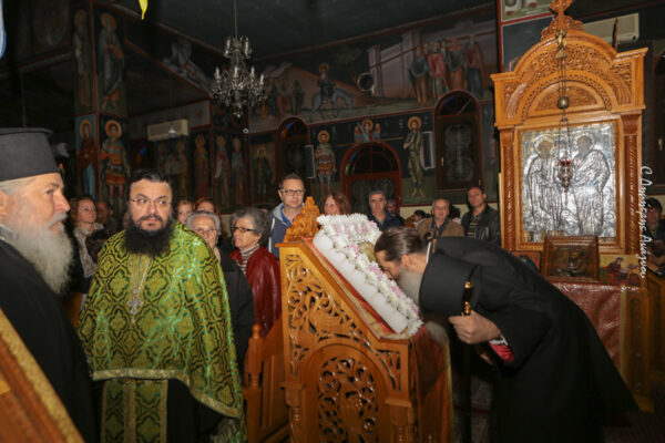 Ο Σεβασμιώτατος με εμφανή τη συγκίνηση ευχαρίστησε τον π. Βασίλειο για τα καλά του λόγια αλλά και για την εγκάρδια υποδοχή και τον συνεχάρη για την πνευματική καλλιέργεια της Ενορίας και για την όμορφη προετοιμασία της Ιεράς Αγρυπνίας.