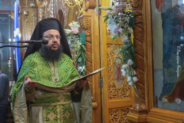 Σεβασμιώτατε σας ευχαριστώ για τη σημερινή τιμή και αγάπη στον άγιο μου και δι’ αυτού προς το πρόσωπό μου. Η παρουσία σας εδώ σήμερα μαρτυρεί πνεύμα Ενότητος και ουσιαστικής αγάπης, στοιχεία που αναγνωρίζουμε στο πρόσωπό Σας και από την πρώτη μέρα κατά την οποία αναλάβατε το πηδάλιο της νοητής μας ολκάδος, γίνατε ο Συμεών της καρδιάς μας.