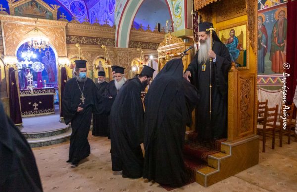 Ο Σεβασμιώτατος προ της απολύσεως αναφέρθηκε στον Άγιο Ευθύμιο αναλύοντας στίχους από τον πολυέλαιο, ο οποίος ψάλλεται σε μνήμες Οσίων και υπογράμμισε την πνευματική έννοια της ησυχίας την οποία είχε ο Άγιος Ευθύμιος και όλοι οι Άγιοι της Εκκλησίας μας.