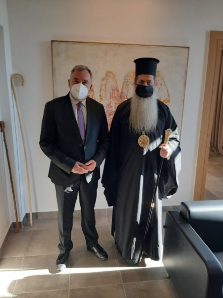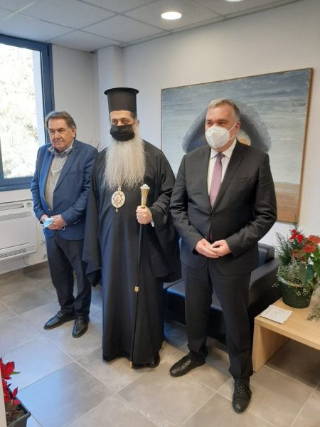 Ακολούθως ο Σεβασμιώτατος επισκέφθηκε ευχετικώς στο γραφείο του, τον εορτάζοντα κ. Δήμαρχο Λαμιέων κ. Ευθύμιο Καραΐσκο και για αρκετή ώρα είχαν μία ευχάριστη και ουσιαστική επικοινωνία και ανταλλαγή απόψεων, ενώ τον ευχαρίστησε εκ μέρους όλων για την άψογη και υποδειγματική συνεργασία μεταξύ Ιεράς Μητροπόλεως και Δήμου Λαμιέων, της οποίας τους καρπούς γεύεται η τοπική κοινωνία και κυρίως οι πάσχοντες και αναγκεμένοι συνάνθρωποί μας.