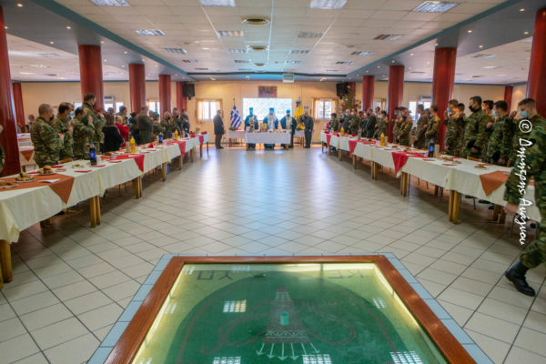 Ο Διοικητής του Κέντρου ευχαρίστησε τον Σεβασμιώτατο κ. Συμεών για την τιμητική αποδοχή της προσκλήσεως και την ευλογητή παρουσία του στο στρατόπεδο και εκ μέρους όλων του ευχήθηκε καλή, ευλογημένη και καρποφόρα χρονιά με δύναμη και υγεία για την συνέχιση του πλούσιου και πολυποίκιλου ποιμαντικού έργου του στην Φθιώτιδα και στην τοπική Εκκλησία.