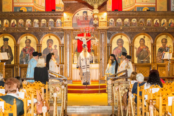 Τον Σεβασμιώτατο στην Ιερά Αγρυπνία, πλαισίωσε ο Ιερομόναχος π. Γεώργιος Καυσοκαλυβίτης εκ του Αγιωνύμου όρος του Άθω, ο Πρωτοσύγκελλος της Ιεράς Μητροπόλεως Πανοσιολ. Αρχιμ. π. Άγγελος Ανθόπουλος, Προϊστάμενος της Ενορίας, ο Γενικός Αρχιερατικός Επίτροπος Αιδεσιμόλ. Πρωτ. π. Νεόφυτος Ραφαηλίδης και άλλοι κληρικοί.