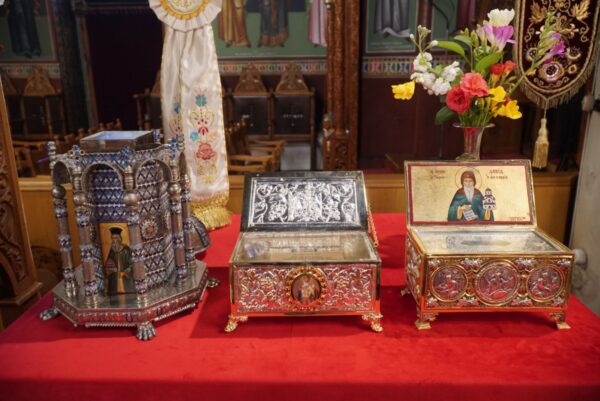 Αμέσως μετά ο Σεβασμιώτατος και οι Ιερείς με ευλαβική στάση θερμής προσευχής εστάθησαν ενώπιον των Ιερών Λειψάνων των Φθιωτών Αγίων, τα οποία αγιαστικά, ως άλλα μυρίπνοα άνθη ζωής αιωνίου, εναποτέθηκαν πλησίον του Τιμίου Σταυρού και ετέλεσε την Ακολουθία της Ιεράς παρακλήσεως προς τους Φθιώτες Αγίους, προσευχόμενος μαζί με το άγιο πρεσβυτέριο, αλλά και όλους τους πιστούς από το σπίτι, όπως οι Άγιοι της Φθιώτιδος πρεσβεύουν αδιαλείπτως προς τον Ζωοδότη Χριστό και την Μητέρα Παναγία, υπέρ προστασίας, σκέπης και υγείας, όχι μόνον των κατοίκων του Νομού μας, αλλά και όλης της Πατρίδος μας και όλου του κόσμου. Μάλιστα ο Σεβασμιώτατος στα Μεγαλυνάρια της Παναγίας και των Αγίων θυμιάτισε ο ίδιος όλο τον Ναό, τα άδεια καθίσματα και στασίδια της Εκκλησίας και ευλόγησε τους πάντες.