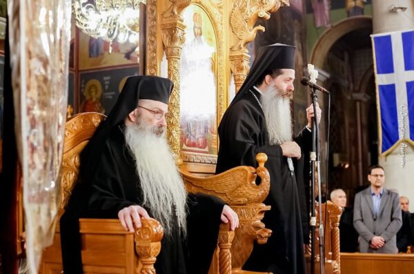 «Θεωρώ υποχρέωσή μου, Σεβασμιώτατε να ευχαριστήσω θερμότατα για την πρόσκληση, να απευθύνω τον λόγο στους αδερφούς χριστιανούς της Ιεράς Μητροπόλεως σας στον αποψινό Kατανυκτικό εσπερινό, να εκφράσω επίσης την χαρά μου που βρίσκομαι κοντά σας και τη συγκίνησή μου, διότι μετά από την αρμονική και τόσο καρποφόρα συνεργασία μας στην Ιερά Αρχιεπισκοπή Αθηνών, Σας βλέπω πρώτη φορά μέσα στον ποίμνιό Σας και παρακαλώ να δεχτείτε την ταπεινή προσευχή μας προς τον Άγιο Θεό, να Σας δίνει δυνάμεις και σοφία και υπομονή και χάρη πλούσια, ώστε να διαποιμαίνετε επί πολλά έτη αυτόν τον ευλογημένο λαό της Επαρχίας Σας και να οδηγείτε την ποίμνη του Χριστού εις νομάς σωτηρίους, ώστε πολλές ψυχές να ωφελούνται και να δοξάζεται το Άγιο Όνομα του Κυρίου μας.