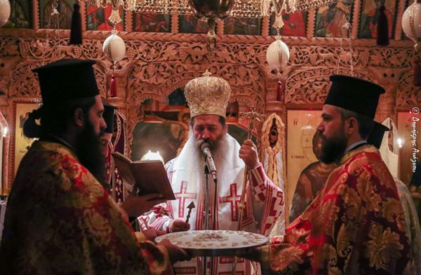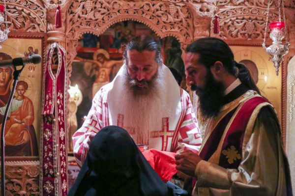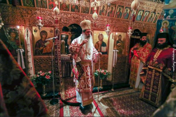 Τέλος ο Σεβασμιώτατος ευλόγησε πατρικά την Αγία Καθηγουμένη της Μονής Γερόντισσα Ιουστίνα και την εορτάζουσα αδελφή Αναστασία και τις ευχαρίστησε που κρατούν αναμμένη την λαμπάδα της πίστεως και της προσευχής σε αυτόν τον αγιασμένο και ιστορικό τόπο.
