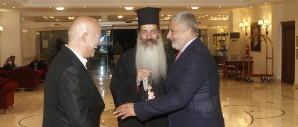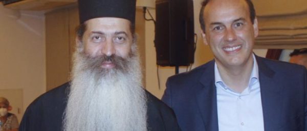 Ο Σεβασμιώτατος, στο πλαίσιο της περιοδείας του στα Καμένα Βούρλα καλωσόρισε και τον Δήμαρχο Γλυφάδος κ. Γεώργιο Παπανικολάου, με τον οποίο συνδέονται από ετών με δεσμούς φιλίας.