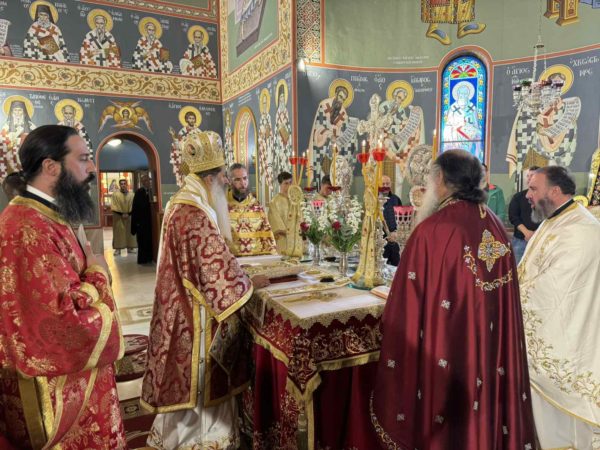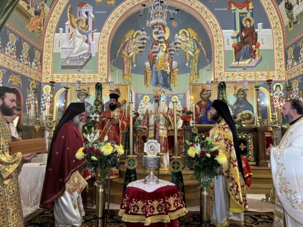 Ο Σεβασμιώτατος χοροστάτησε στον Πανηγυρικό Όρθρο και ακολούθως τέλεσε την Αρχιερατική Θεία Λειτουργία, ενώ οι Ιερές Ακολουθίες μεταδόθηκαν απευθείας τηλεοπτικά, ραδιοφωνικά και διαδικτυακά.