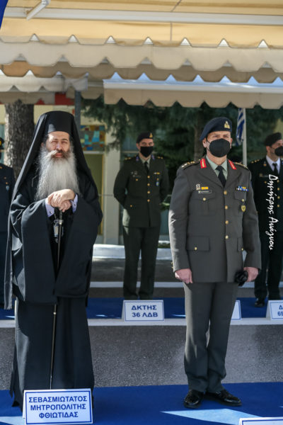 Την Ορκωμοσία των 210 νεοσυλλέκτων οπλιτών της 2022 Β’ ΕΣΣΟ τέλεσε σήμερα το πρωί στο Κέντρο Εκπαίδευσης Υλικού Πολέμου στη Λαμία ο Σεβασμιώτατος Μητροπολίτης Φθιώτιδος κ. Συμεών, μετά από πρόσκληση του Φρουράρχου Λαμίας – Διοικητού του ΚΕΥΠ Ταξιάρχου Μιχαήλ Κρητσωτάκη.