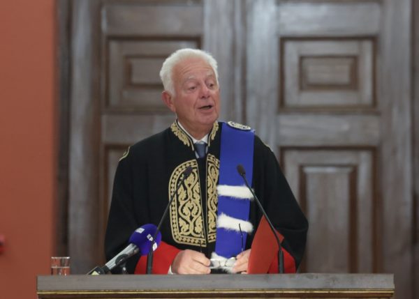 Ακολούθησε η ανάγνωση των κειμένων του ψηφίσματος της Σχολής, της Αναγόρευσης και του Διδακτορικού Διπλώματος από τον Κοσμήτορα της Νομικής Σχολής κ. Κωνσταντίνο Χριστοδούλου, καθώς και η περιένδυση με την τήβεννο της Σχολής και η επίδοση του τιμητικού μεταλλίου από τον Πρύτανη του Πανεπιστημίου Αθηνών κ. Γεράσιμο Σιάσο.
