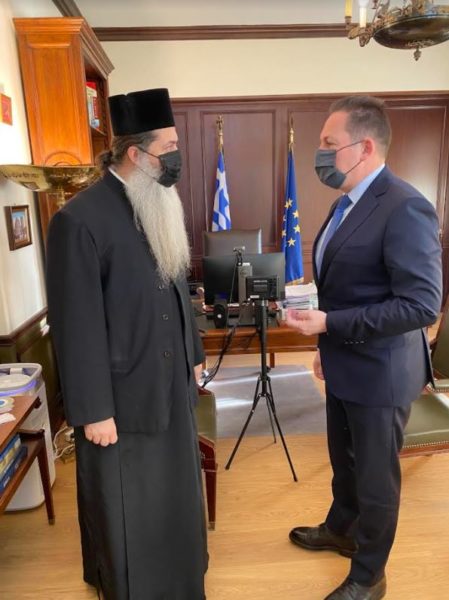Για μία ακόμη φορά ο Σεβασμιώτατος Μητροπολίτης Φθιώτιδος κ. Συμεών επισκέφτηκε τον Αναπληρωτή Υπουργό Εσωτερικών κ. Στέλιο Πέτσα στο πλαίσιο μάλιστα της έμπρακτης διάθεσης του κ. Συμεών να υποστηρίζει ενεργά θέματα και ζητήματα της περιφερειακής ενότητας Φθιώτιδας και των οργανισμών τοπικής αυτοδιοικήσεως, που βρίσκονται υπό την εκκλησιαστική του δικαιοδοσία.
