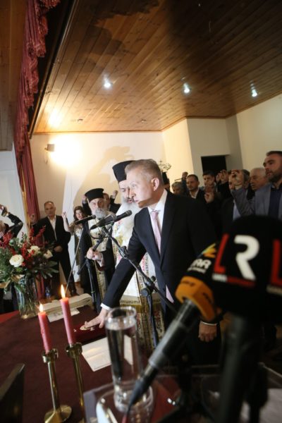 «Θέλω να σας συγχαρώ, θέλω να ευχηθώ ολόψυχα να έχετε υγεία, να έχετε δύναμη, ώστε να αξιωθείτε αυτό, το οποίο προσευχηθήκαμε πριν λίγο. Προσευχηθήκαμε να εκπληρώσετε τις επαγγελίες, τις υποσχέσεις, πρώτιστα την υπόσχεση του όρκου αυτού καθεαυτού, αλλά και τις προγραμματικές σας επαγγελίες, τις δεσμεύσεις σας που δώσατε δημόσια, αυτές που δώσατε κατ’ ιδίαν, αυτές που εννοήσατε και αυτές που υπονοήσατε και κυρίως εύχομαι να έχετε μία ετοιμότητα να ανταποκρίνεστε στο έκτακτο.