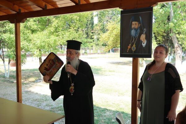 Η αρχηγός επέδωσε ως δώρο στον Σεβασμιώτατο εκ μέρους όλων μία χειροποίητη εικόνα δια την οποία ο Σεβασμιώτατος τις ευχαρίστησε και τους ευχήθηκε καλή διαμονή στην κατασκήνωση και καλό καλοκαίρι.