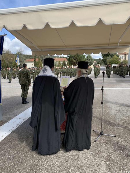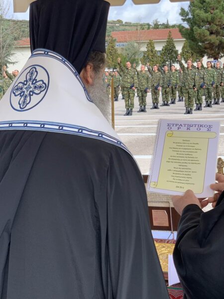 Τις ορκωμοσίες ετέλεσε, κατόπιν ειδικής άδειας, ο Σεβασμιώτατος Μητροπολίτης μας κ. Συμεών, ο οποίος παρέστη και στην τελετή παράδοσης – παραλαβής της Διοικήσεως του ΚΕΥΠ παρόντος μόνον του εκπρόσωπου του Αρχηγού ΓΕΣ, Υποστράτηγου Μιχαήλ Γαλανού, Διευθυντού της ΔΥΠ/ΓΕΣ, χωρίς άλλους προσκεκλημένους Άρχοντες της Πολιτείας και του Στρατού, καθώς και συγγενών των νέων Οπλιτών.