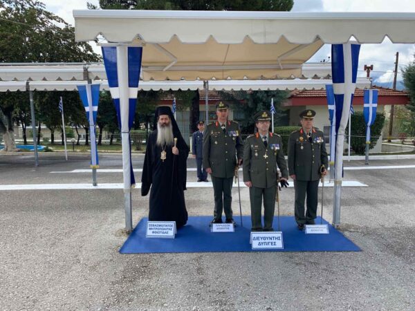 Ο Σεβασμιώτατος ευχήθηκε στον απερχόμενο Ταξίαρχο καλή επιτυχία στα νέα ευθυνοφόρα καθήκοντα του ως Υποδιευθυντού πλέον, της Διεύθυνσης Υλικού Πολέμου του Γενικού Επιτελείου Στρατού και στο Νέο Διοικητή ευχήθηκε εγκαρδίως υγεία και την από Θεού δύναμη και επιτυχή έκβαση στο έργο του, ως Διοικητού του ΚΕΥΠ και ως Ανωτάτου Διοικητού Φρουράς Λαμίας.