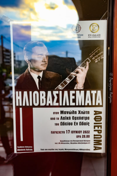 Μαθητές και μαθήτριες του Ωδείου έδωσαν πραγματικά ένα ρεσιτάλ λαϊκού μπουζουκιού και αγαπημένων τραγουδιών μιας άλλης εποχής του ελληνικού ρεπερτορίου, πραγματοποιώντας ένα αφιέρωμα στον Μεγάλο Έλληνα Συνθέτη, Καλλιτέχνη και Δεξιοτέχνη του Μπουζουκιού Μανώλη Χιώτη με τίτλο: «Ηλιοβασιλέματα».