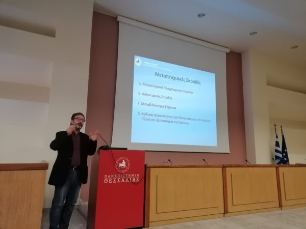 «Ερχόμενος σήμερα εδώ στον χώρο αυτό της ακαδημαϊκής ελευθερίας και της έρευνας, είδα ένα ζωντανό Πανεπιστήμιο και χάρηκα πάρα πολύ. Ζήτησα μάλιστα προσεχώς να δω τους Προέδρους των Φοιτητικών Συλλόγων για να γίνω και εγώ κοινωνός των αιτημάτων των φοιτητών μας. Εύχομαι να έχετε πάντα δυνατή φωνή και καρδιά. Να περάσετε όμορφα στην πόλη μας και να έχετε καλές και πετυχημένες σπουδές. Ευχαριστούμε που επιλέξατε αυτό το τμήμα για τις σπουδές σας. Θα είμαι πάντα στο πλευρό σας».